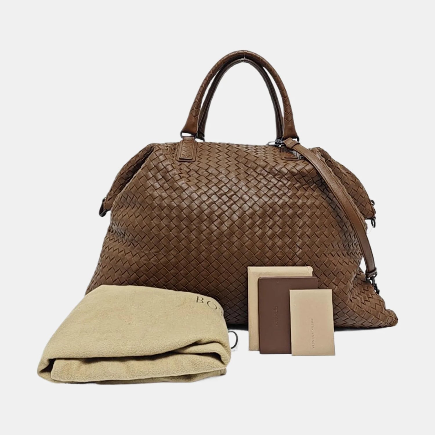 Bolsa Bottega Veneta Maxi Convertible Tote-Couro Marrom Chocolate