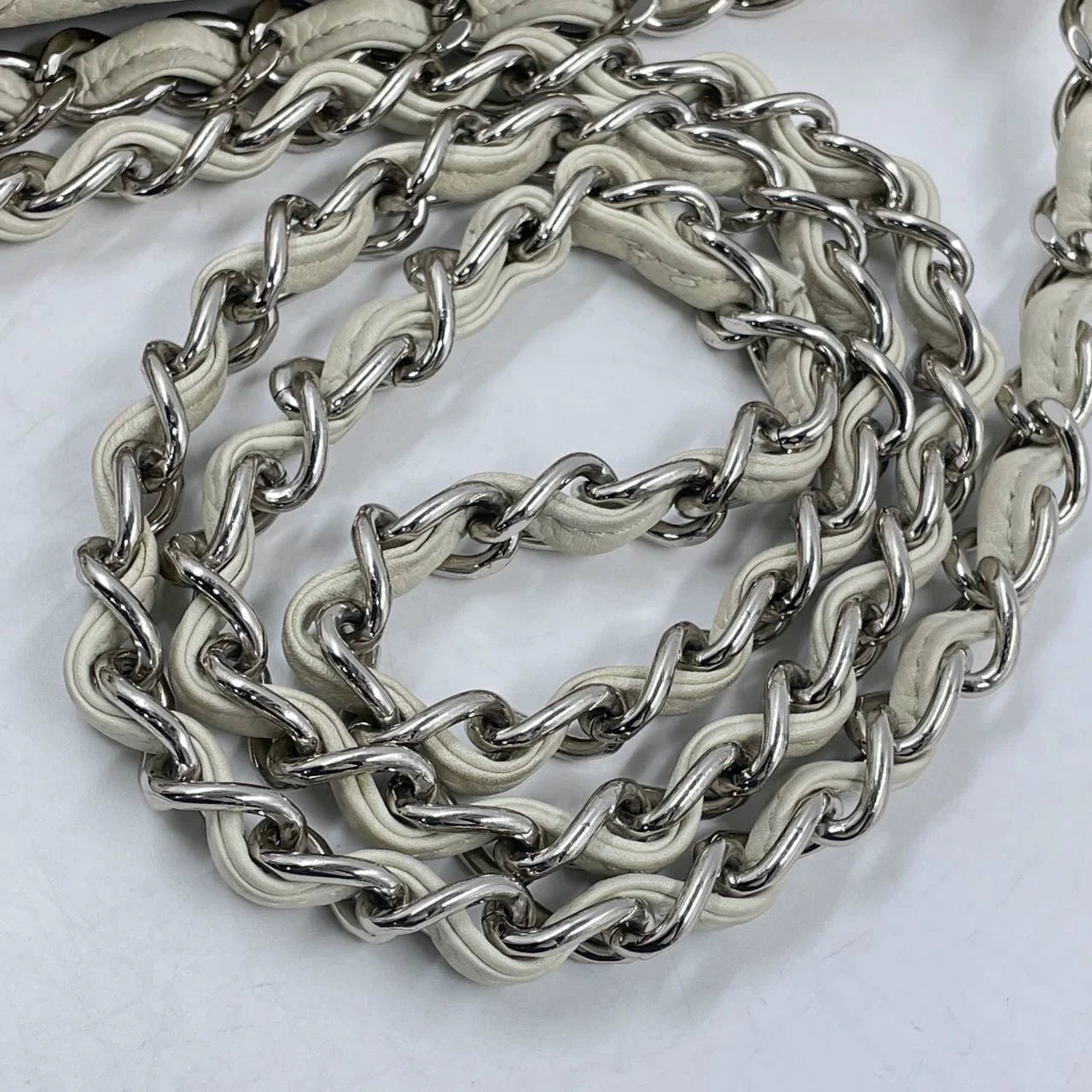 Bolsa Chanel Classic Flap Maxi Milk White Caviar Leather Silver Hardware