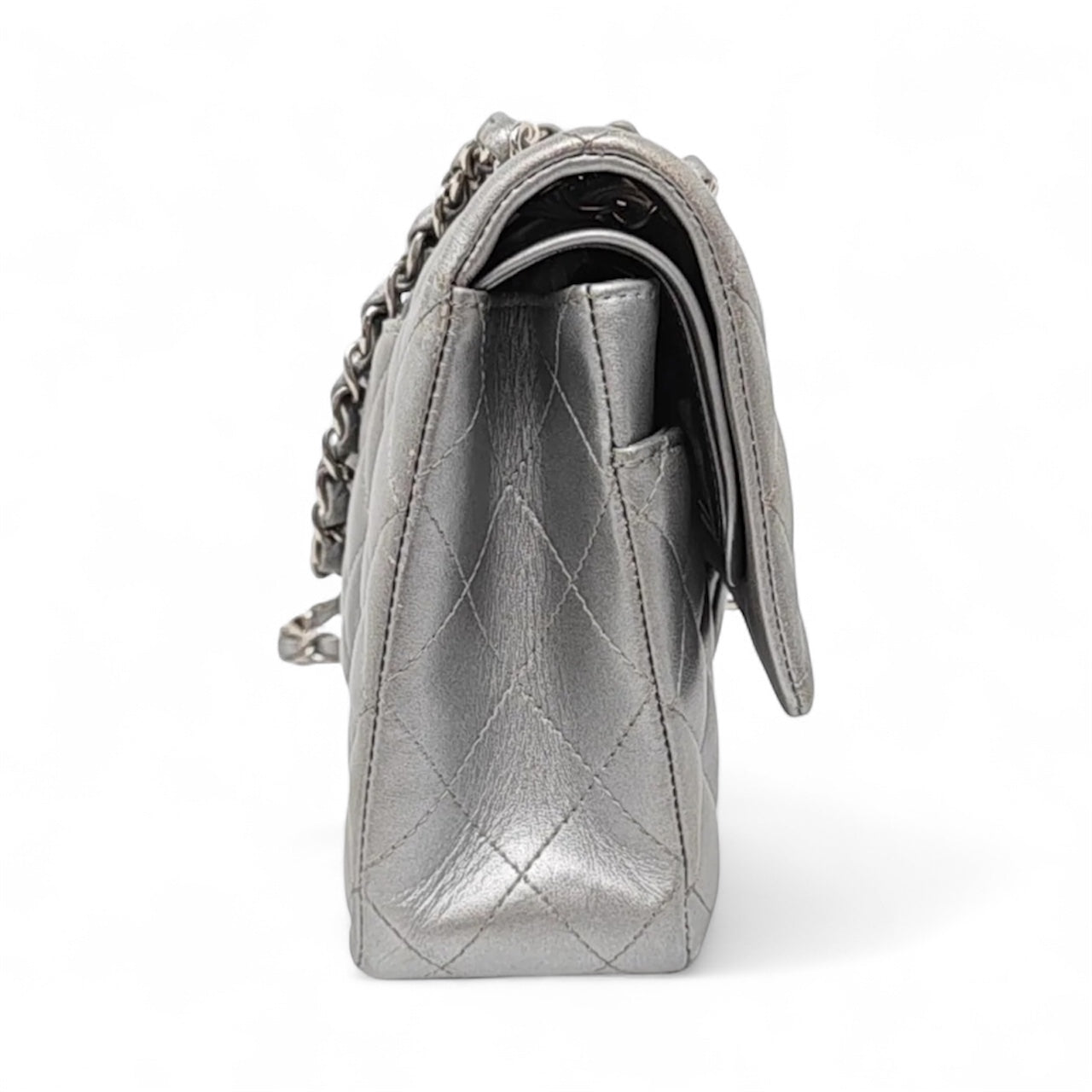 Bolsa Chanel Classic Flap Média – Couro de Cordeiro Cinza Prateado