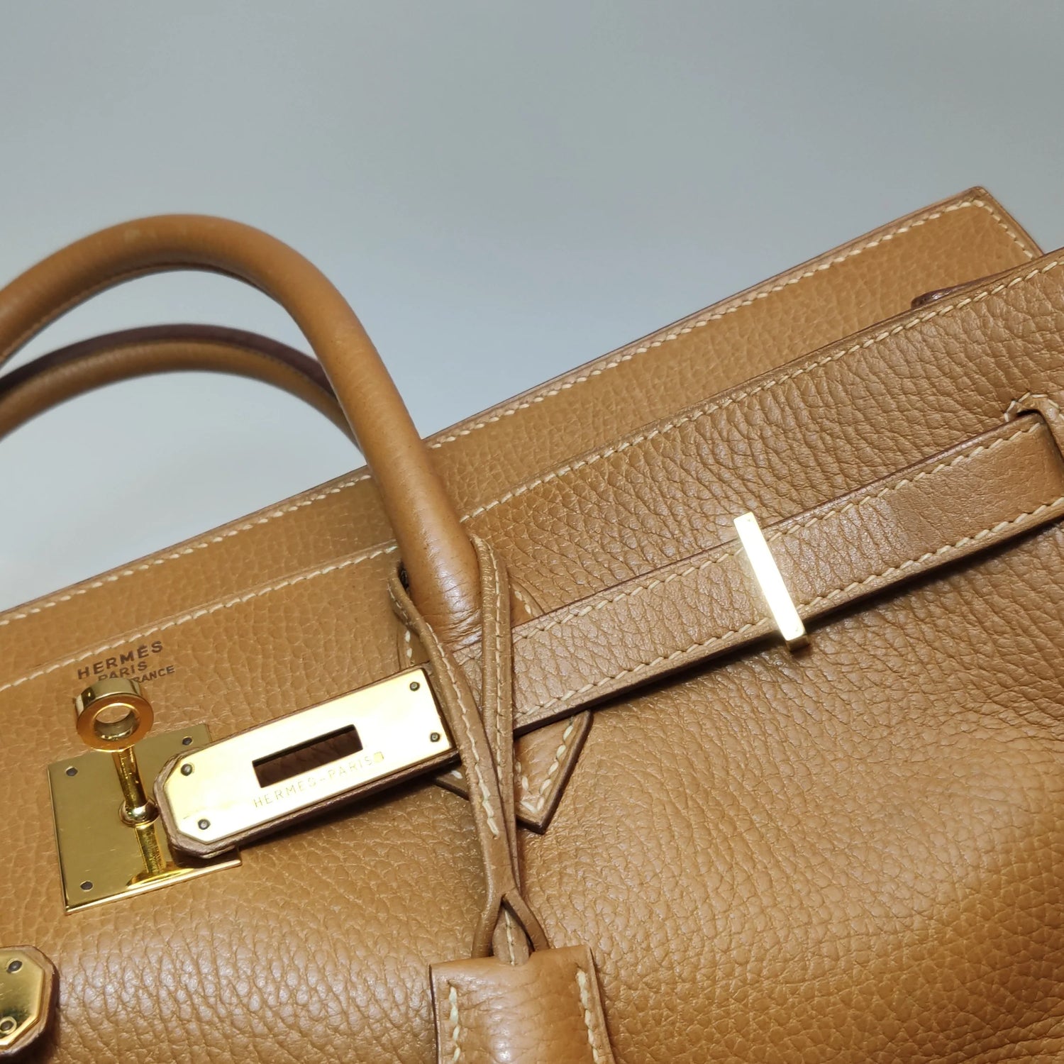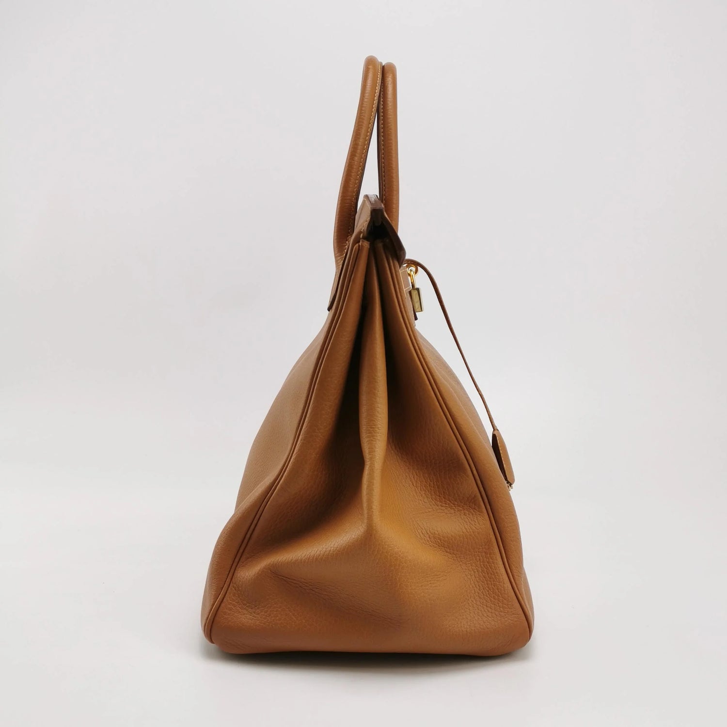 Hermès Birkin 40 Couro Clemence Gold com Ferragens Douradas