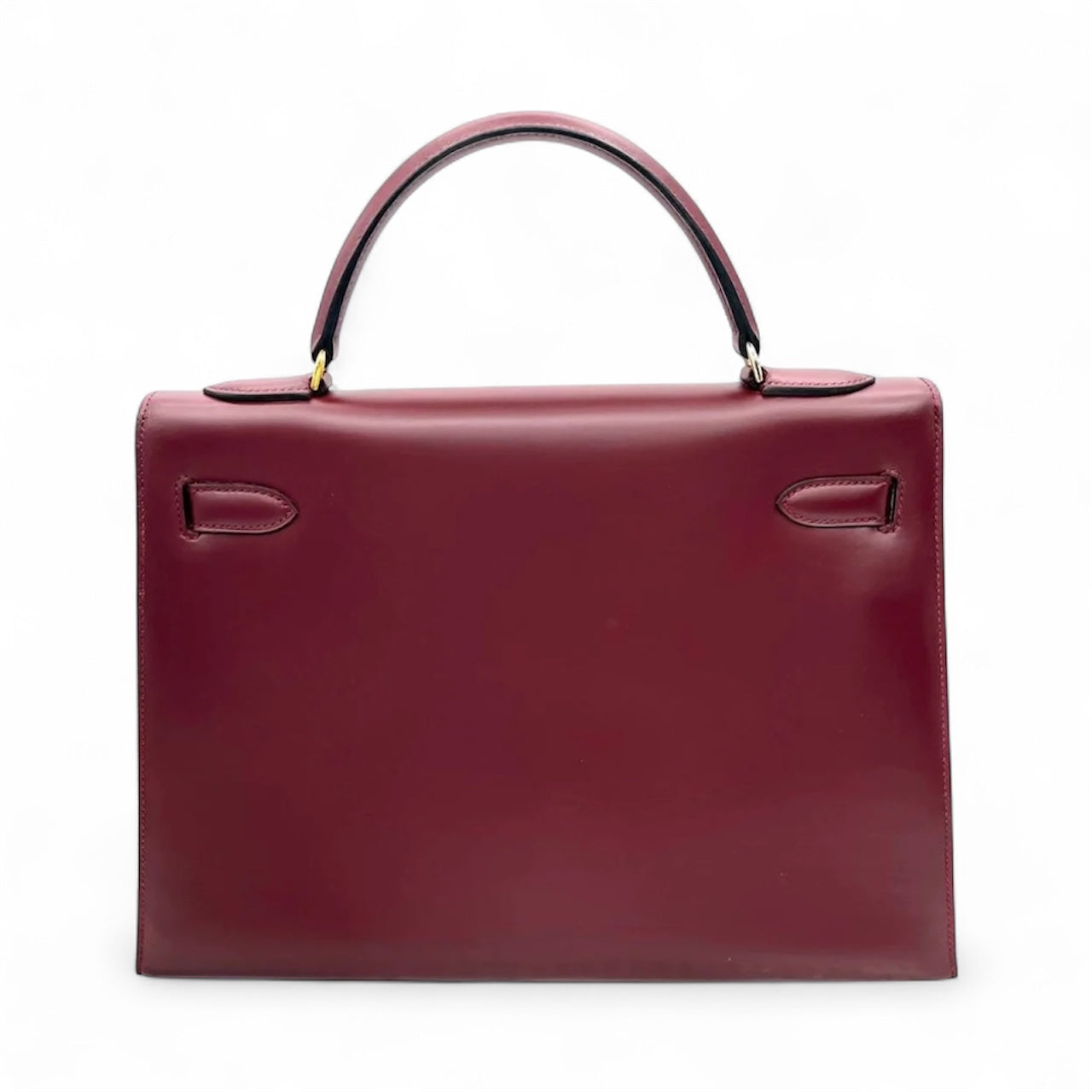 Hermès Kelly 32 Sellier Burgundy Box Leather Gold Hardware