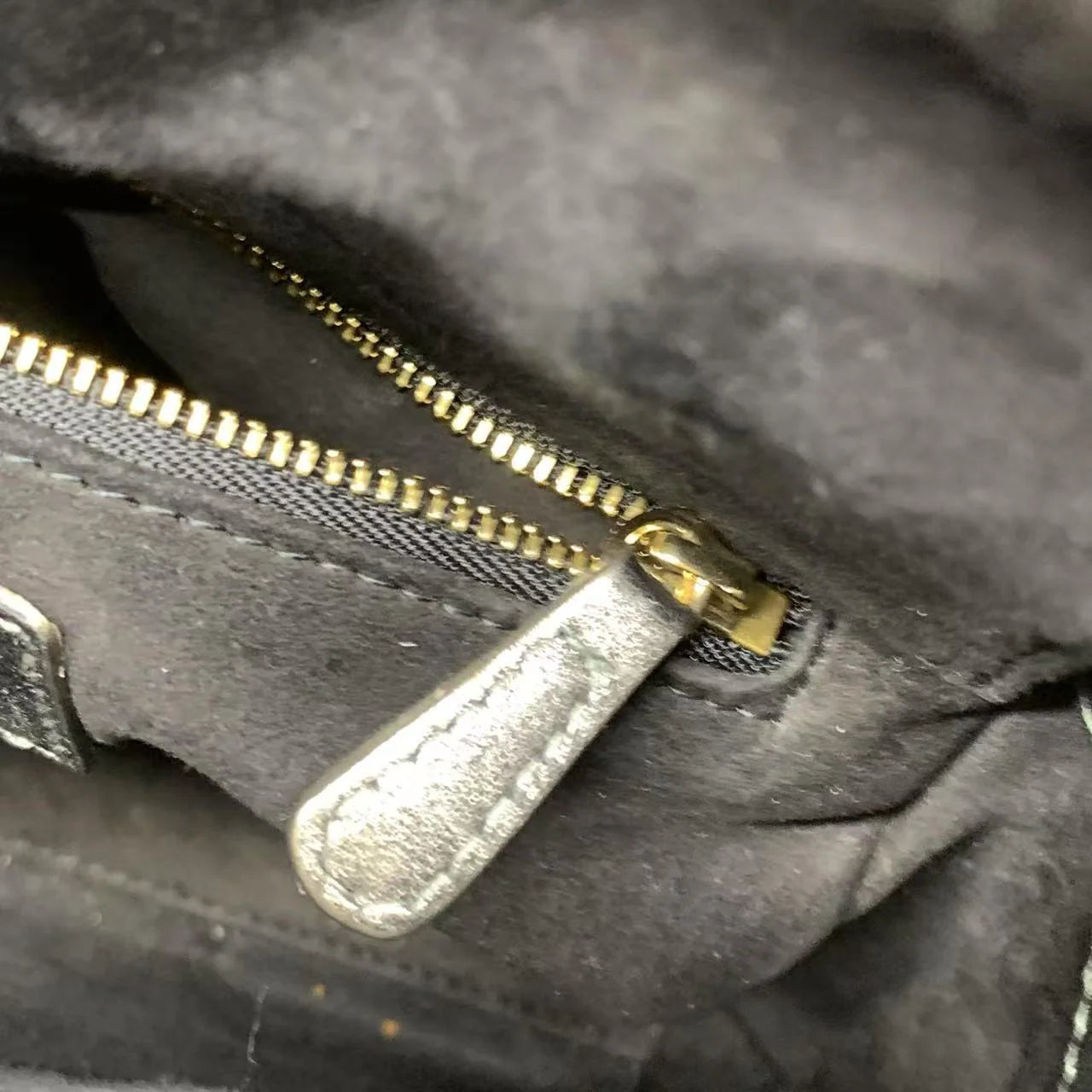 Desgaste discreto nos cantos e alças, além de pequenos riscos superficiais no couro e no metal — nada que comprometa sua sofisticação.